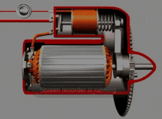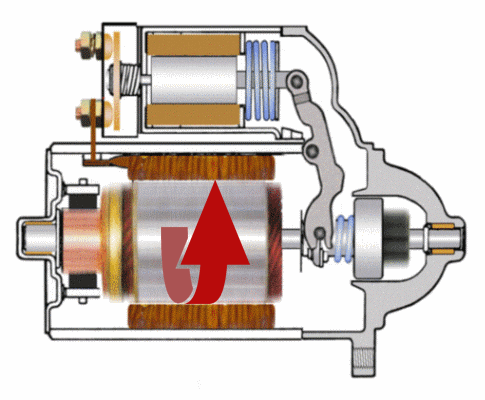 起动机不工作时驱动齿轮并不与飞轮齿圈接触,当我们拧钥匙启动发动机时磁力开关开始动作,把驱动齿轮推出去与飞轮啮合。启动成功后磁力开关复位,驱动齿轮退回。