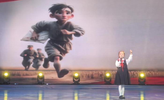 少儿组的比赛更像一场沉浸式历史课。7岁邵宜宁头戴白羊肚子手巾身穿小花袄,当她讲到“八路军叔叔,快打鬼子啊……”背景屏幕同步显现当年的史料影像,现场观众无不起立鼓掌。“我就是《海娃》,我长大了,想当兵,去保卫祖国。”7岁李佳霖稚嫩的童声里传递希望“小英雄杨来西没有留下照片,也没有坟墓和墓碑,但是却在人们心中留下了一座丰碑……”背景动漫中杨来西的奔跑背影与台上李佳霖仿佛穿越时空在那一刻重合在一起,“和平时期了,我想当一名警察,像爸爸一样抓坏人。”……这些创意源自赛前特训。据睢宁县委宣传部负责此次大赛的卓士超介绍,组委会邀请专业剧团设计“红色故事戏剧工坊”,孩子们通过角色扮演、手工制作道具,将《金色鱼钩》《半条被子》等经典故事转化为立体叙事。