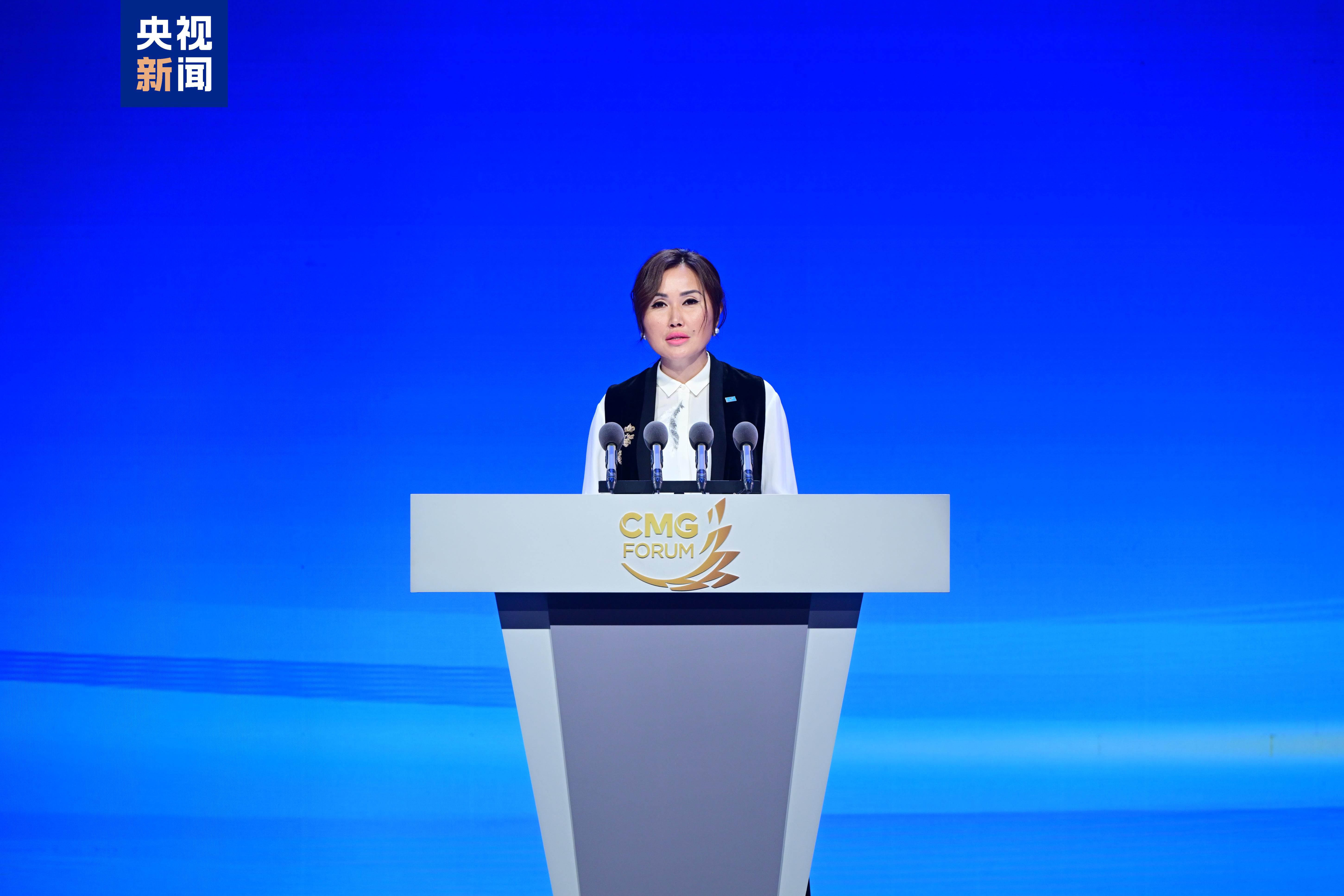 △哈萨克斯坦总统广播电视总局总经理拉乌尚·卡日巴耶娃 哈萨克斯坦总统广播电视总局总经理卡日巴耶娃表示,媒体应成为文明对话的桥梁,为构建可持续的全球未来贡献力量。哈萨克斯坦与中国媒体始终秉持责任优先原则,以平衡、客观、促进友好的报道为两国战略伙伴关系注入正能量。