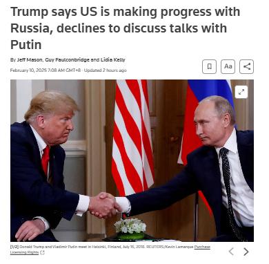 图片来源:路透社报道截图 据报道,特朗普表示,美国正与俄罗斯和乌克兰保持联系,并称“我们正在与双方(俄罗斯和乌克兰)进行对话”。
