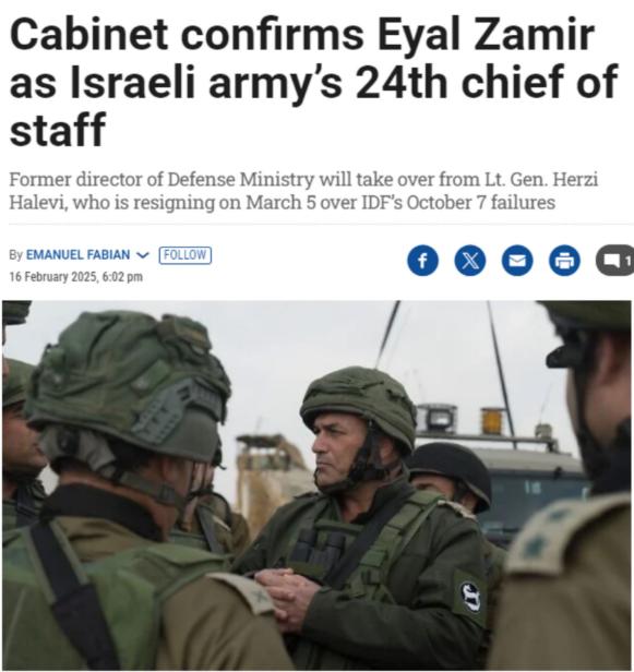 图片来源:《以色列时报》报道截图 当地时间16日,内塔尼亚胡和卡茨办公室发表联合声明称,以色列内阁批准“经过了专业和细致的程序,反映了对扎米尔领导以军丰富经验的高度信任”。