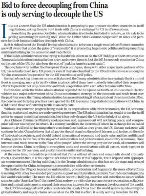 不断恶化的财政情况才是美新一届政府最为重视的经济问题。如果这一痼疾不能尽快纠正,迟早会危及美元信誉,进而波及全球金融体系和经贸活动。因此,无论是刚上台的特朗普政府,还是刚下台的拜登政府,维持贸易保护措施的根本驱动力和压力在于改善财政情况以尽快实现财政平衡。